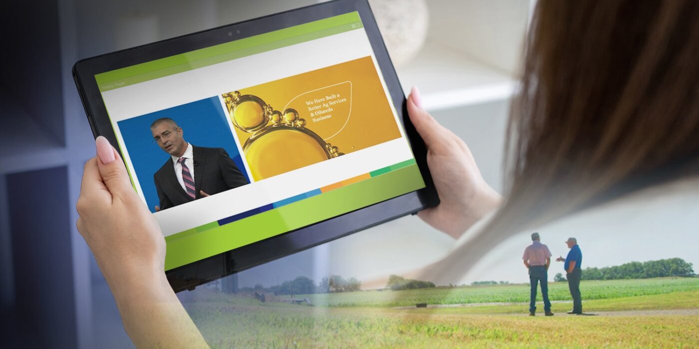 The project began with a series of strategy workshops with their senior executive team, to clarify objectives and align on the approach. Our team collaborated with internal ADM stakeholders from the investor relations, communications, and brand teams to develop presentation content, 2D graphics, motion graphics, a show-open video, and supporting video stories. We also provided executive presentation coaching to enhance and fine-tune the event’s relevance and impact.