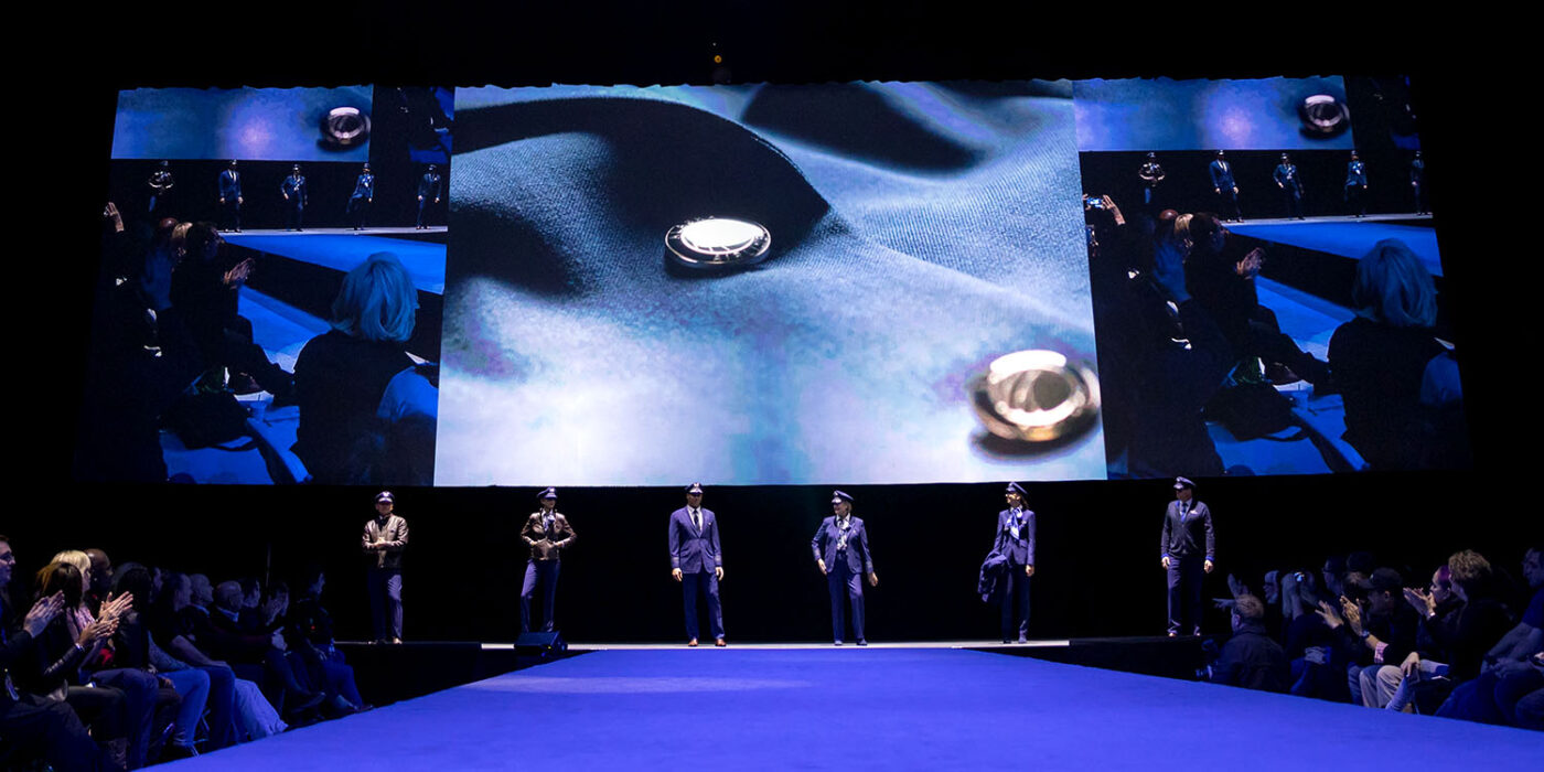 To highlight the craftsmanship—buttons, zippers, embroidery, and belts—we captured extreme close-up 4K footage that opened the event with a dramatic, detail-driven reveal on a 70” screen. The same visuals carried through as a dynamic backdrop, elevating the runway experience as employee models took the stage to the cheers of their peers.