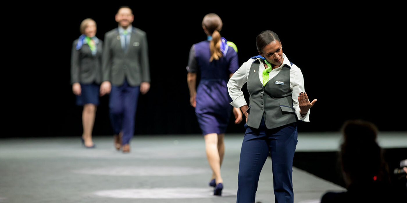 Held at the Alaska Airlines maintenance hangar at SeaTac airport, the event opened with the 2018 Company Meeting, followed by the much-anticipated uniform reveal fashion show.