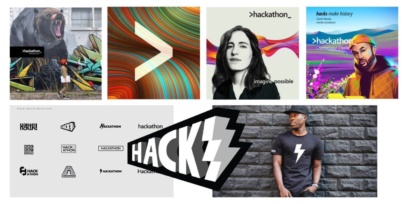 The toolkit we created was used by global regional offices — Microsoft Garages from Ireland to India — to produce their own regional Hackathon materials and experiences. Each different, each visually connected.