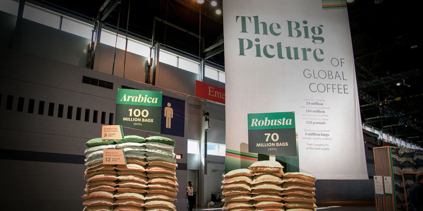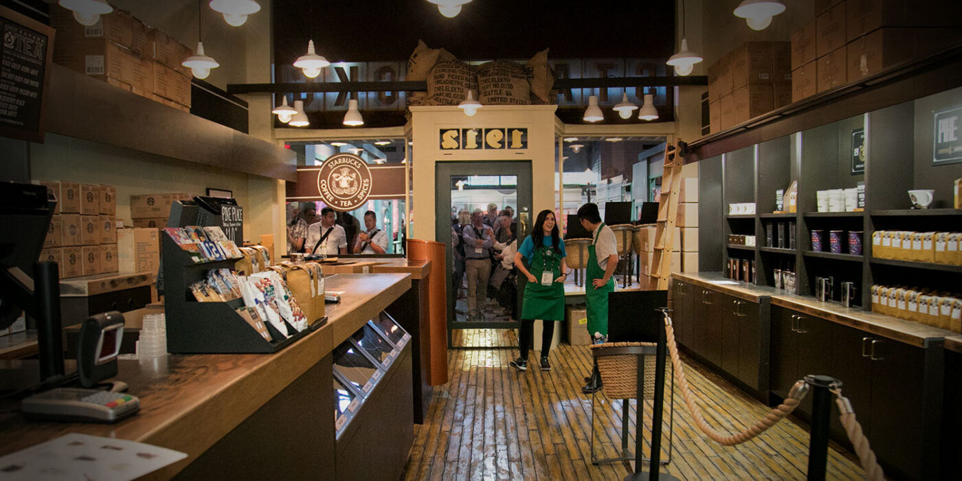 Every agenda included time in a 400,000 sq. ft. experience hall, built around a replica of the Tryer Center, the company’s new innovation hub. Beginning with an immersive mission and values installation, the experience proceeded through every country where Starbucks sources coffee. In order to feature Starbucks’ farm in Costa Rica and the original Pike Place Market store, our team developed astonishing replicas of both for attendees to enjoy.