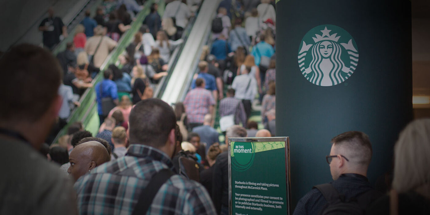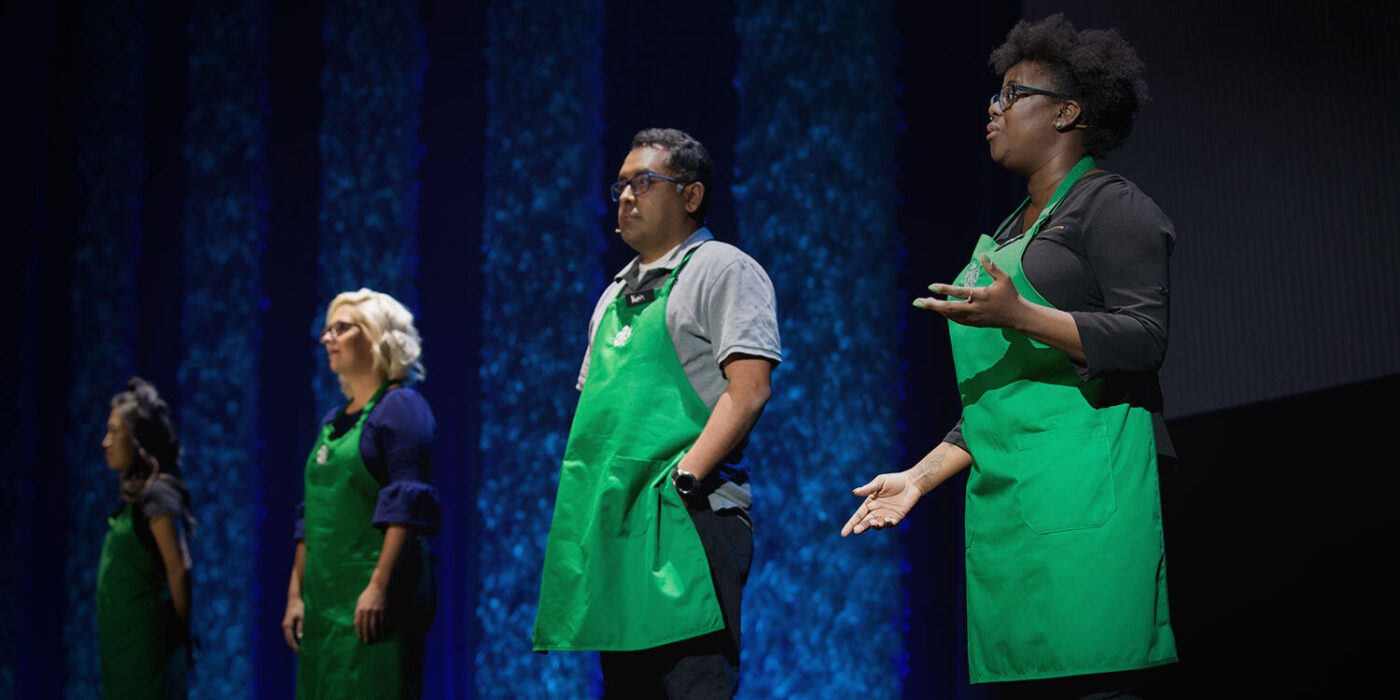 Periodically, Starbucks hosts a large-scale internal conference to bring together leaders from across the company—including more than 12,000 store and regional managers from the U.S. and Canada. The goal: to reconnect with the brand, their passion for coffee, their love for the people they work with and serve in their communities, and to immerse themselves in the strategies for company-wide success for years to come.