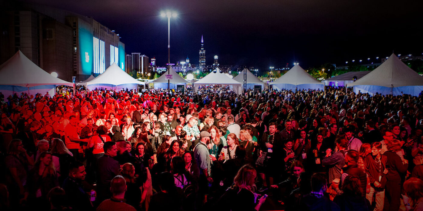Following the closing general session at United Center, attendees exited to one of the arena’s massive outdoor parking lots for a unforgettable party. Our team transformed the lot into an all-out Chicago street festival, featuring dueling pianos, a silent disco, and a mainstage area for live music and DJ Tina T—as well as a craft fair featuring handmade items from local artisans and neighborhood-themed stations featuring food from across Chicago.