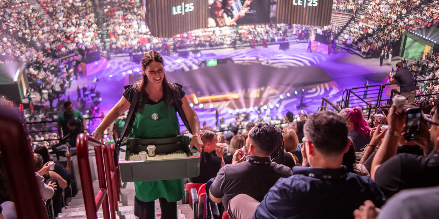 Starbucks begins every meeting with a coffee tasting, and the General Session at LE25 was no exception. Distributing coffee for 14,500 partners, after brewing and pouring, took under six minutes. The tasting was followed by inspiring presentations from CEO, Brian Niccol, and the senior executive team. Musical guests, including Janelle Monáe, topped off the evening.